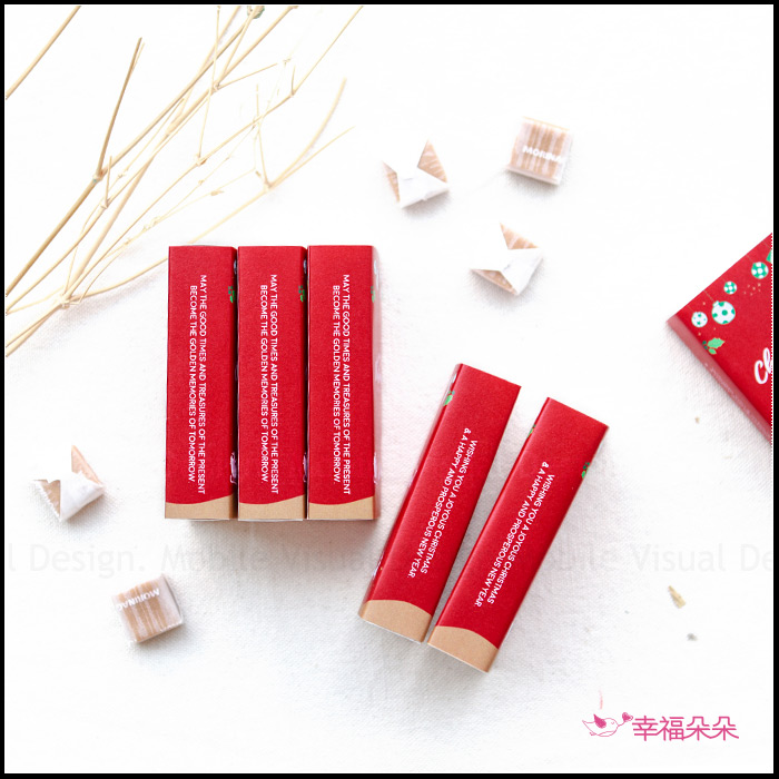 牛奶糖盒裝約4.5x8.4x2cm 內容物手工製作,多少會有些微誤差喔! 不介意才下訂 |