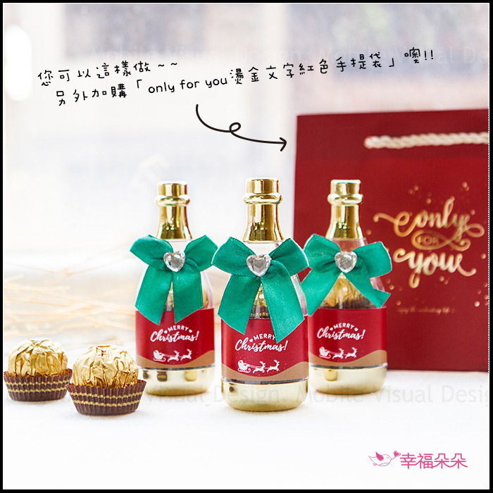 聖誕節禮物贈品 MerryChristmas香檳糖果瓶(金莎2顆入)-滿百份免費印名字 (新品上市特價中) |