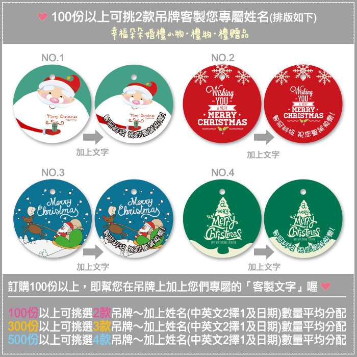 ♥ 低於100份的都採用公版吊牌(不會有客製文字),可直接下標喔 ♥