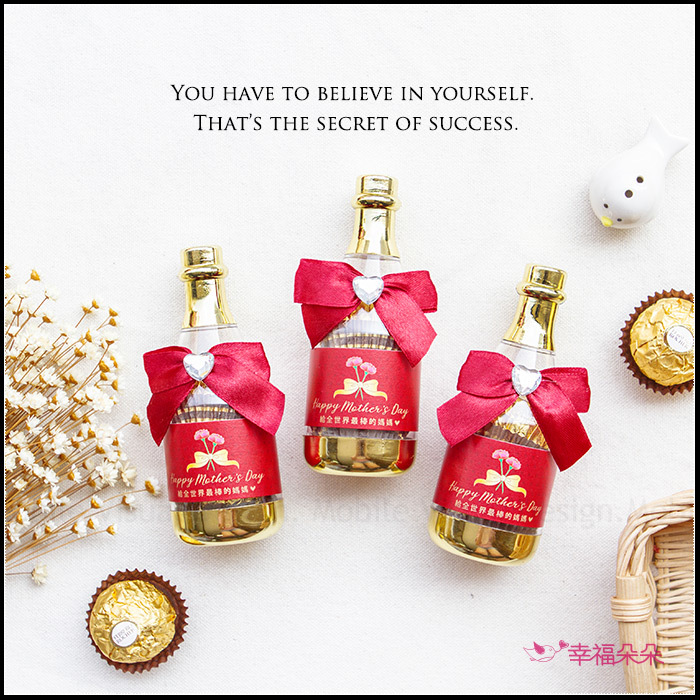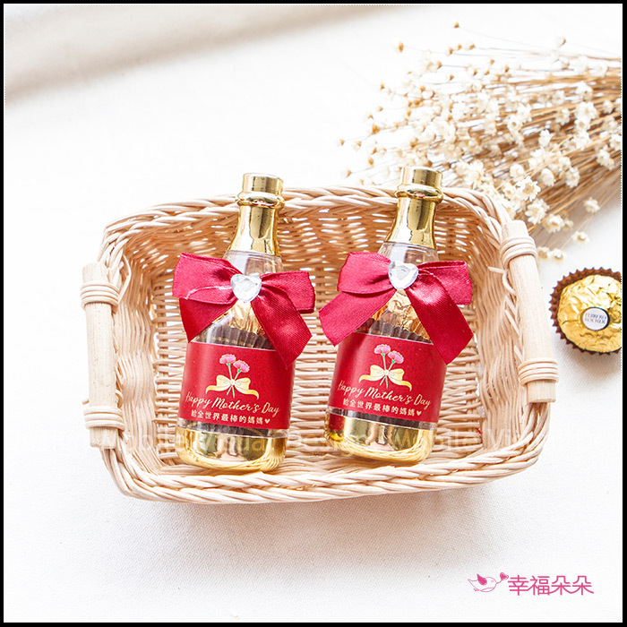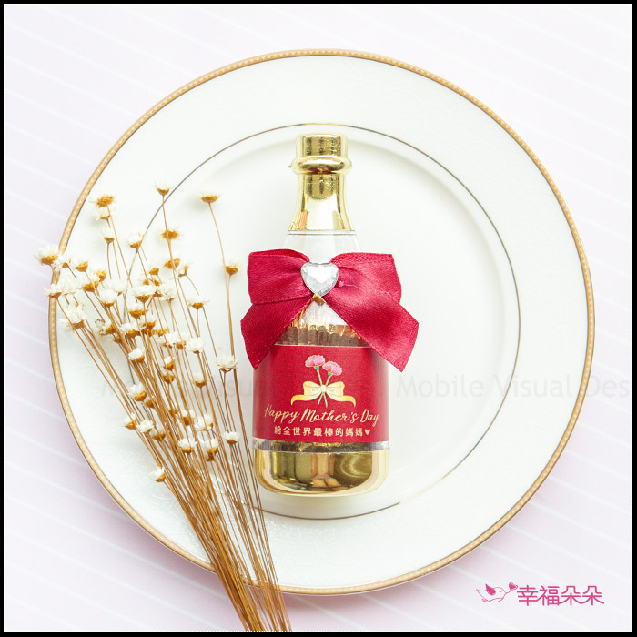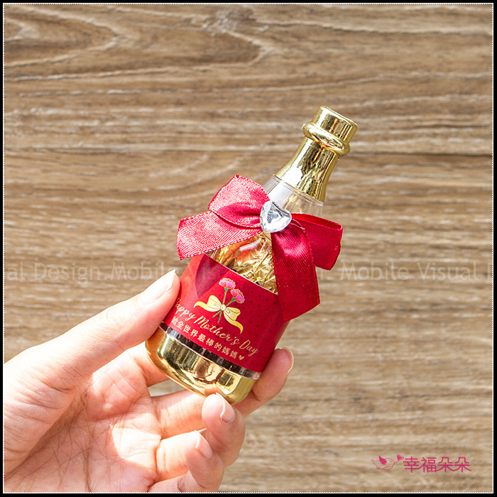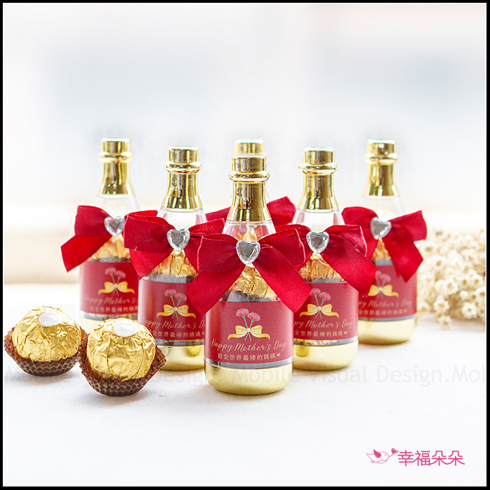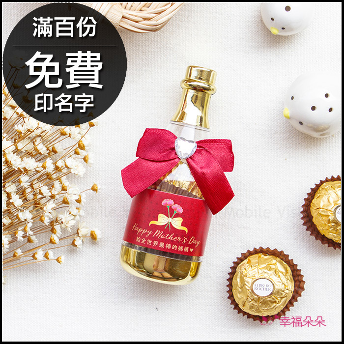 母親節禮物贈品 母親節快樂香檳糖果瓶(金莎2顆入)-滿百份免費印名字 (新品上市特價中) |