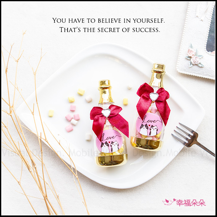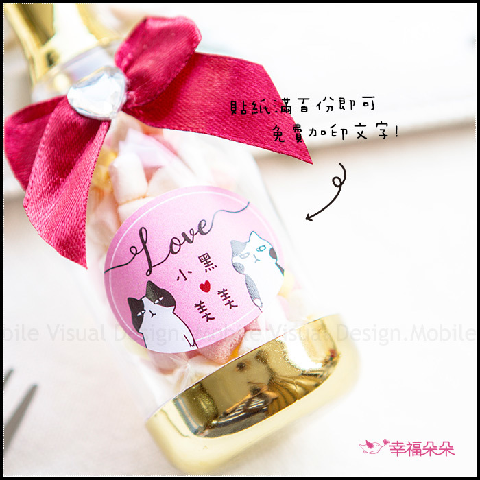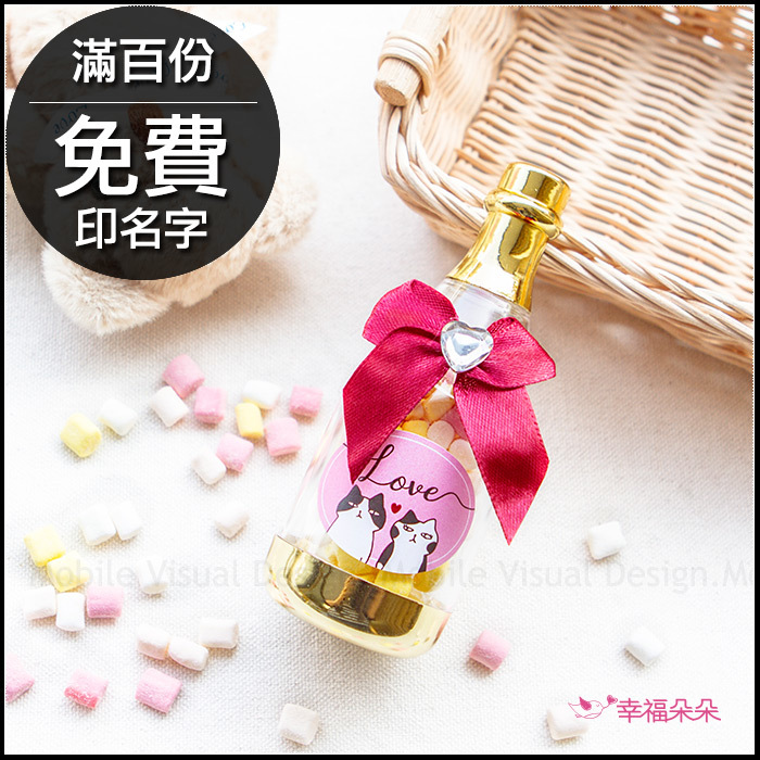貓起來愛LOVE香檳糖果瓶(迷你粉彩棉花糖)-滿百份免費印名字 (新品上市特價中) |