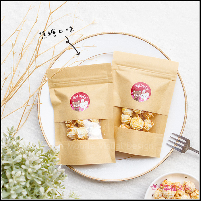 🧡此款為「蘑菇型」爆米花,口味有2種可選,若沒指定一律採焦糖/巧克力各半出貨喔! 🧡每均包裝都是密封的牛皮紙袋包裝並貼有超可愛的幸福朵朵吉祥物奇奇與妮妮的貼紙喔!非常溫馨可愛喔!不管是當點心、小零嘴都很適合,快來收服孩子們的胃吧🧡 更是派對、餐會的最最首選👍