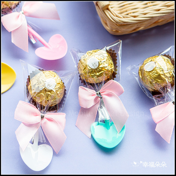 每顆金莎均包著香濃可口的巧克力及榛果顆粒,超好吃!送給最親愛的朋友!真的剛剛好棒棒der 😋 鏟子諧音「產子」,象徵百年好合、早生貴子,是很特殊又吉祥的小禮呦!顏色是隨機混合出貨的喔!恕不挑色喔!因為有時某些顏色會比較多、某些顏色比較少,我們都是依照現貨的顏色製作出貨的喔! 每份均有 金莎巧克力1顆入 並繫上繽紛可愛的小鏟子! 作為禮物送親友或拜訪客戶都絕對是超棒的禮物喔。 *保存方式:存放於乾燥陰涼處即可 *保存期限:至少半年以上 ♥︎若大量訂購下訂前務必先詢問製作時間是否OK喔!