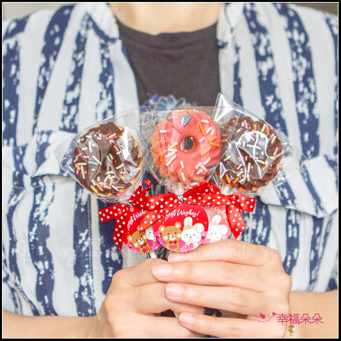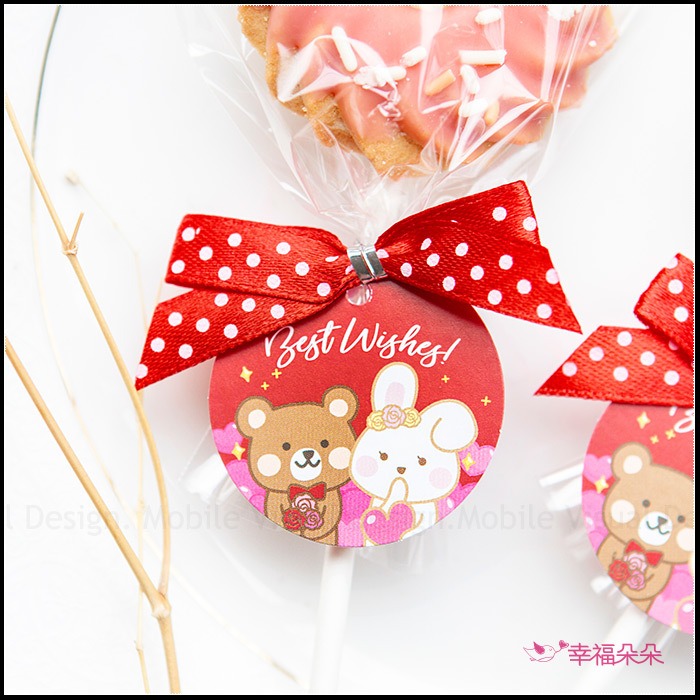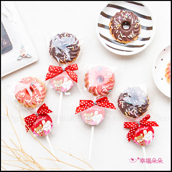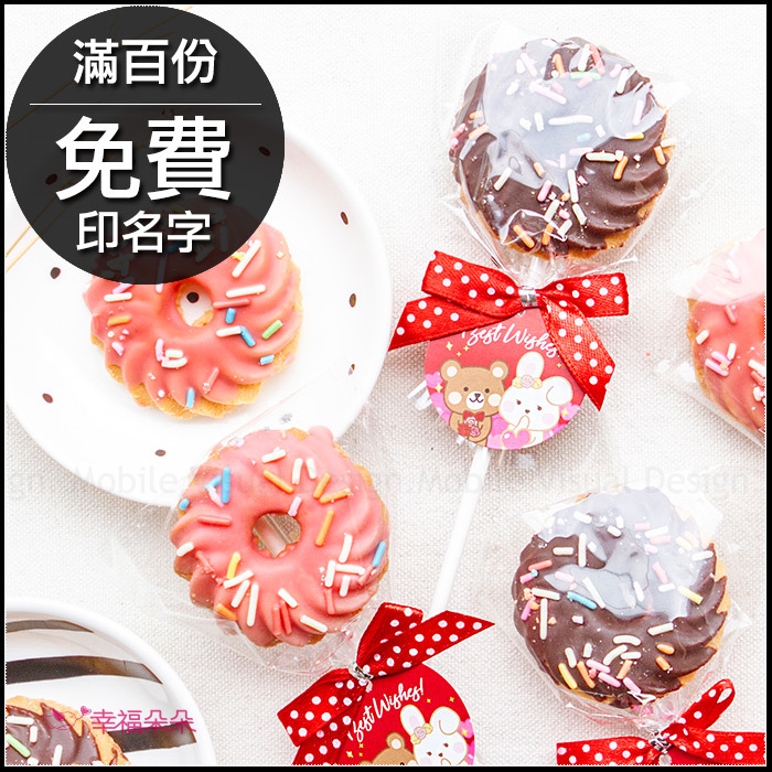 帶有濃濃起士味的甜甜圈餅乾裹上美味巧克力, 灑上繽紛彩針糖珠,純手工製作,超好吃😋 都會為您繫上幸福朵朵獨家設計精美吊牌 並繫上紅色水玉蝴蝶結,非常俏皮可愛! 作為婚禮分送親友或活動送客都很棒喔🧡