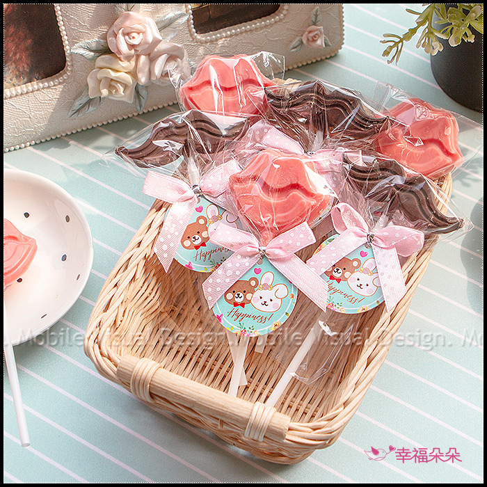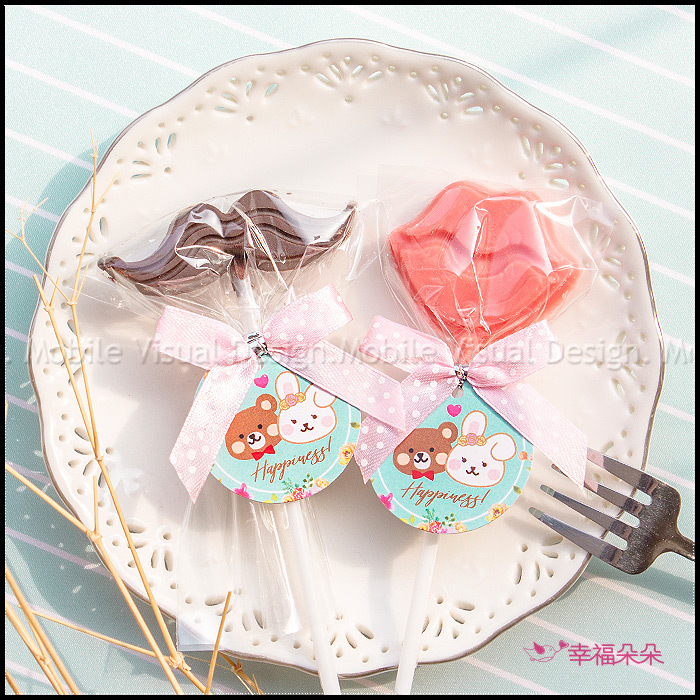 共有2款造型可挑:小鬍子(牛奶巧克力)、小嘴唇(草莓巧克力)