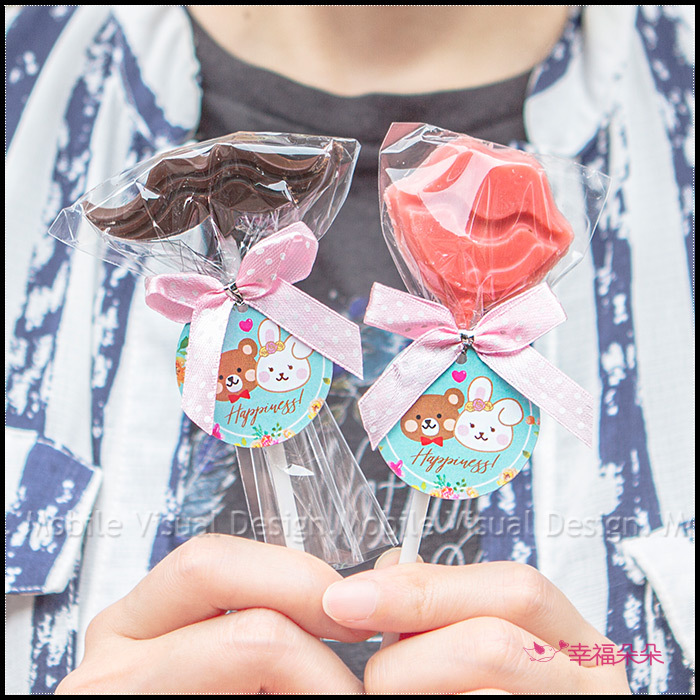造型手工巧克力是流行又時尚的歐美小物唷! 都會為您繫上幸福朵朵獨家設計奇奇妮妮吊牌 並為您繫上點點粉色蝴蝶結,非常俏皮可愛! 作為婚禮分送親友或活動送客都很棒喔🧡