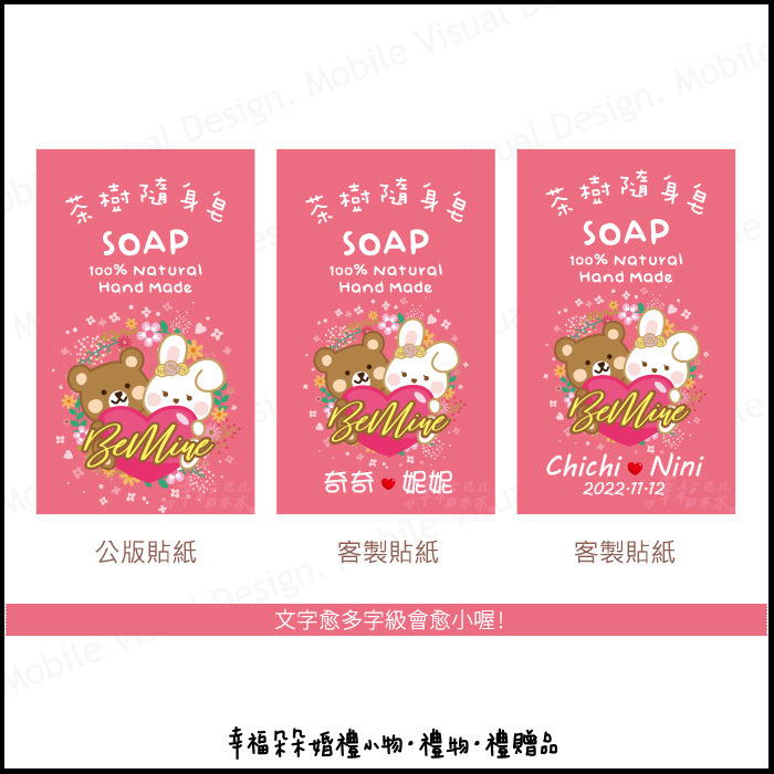 100份以下是公版貼紙(沒印名字) 100份以上貼紙可以免費印製名字(日期) *因貼紙範圍較小,若您們的英文名字較長,建議用中文名字唷!