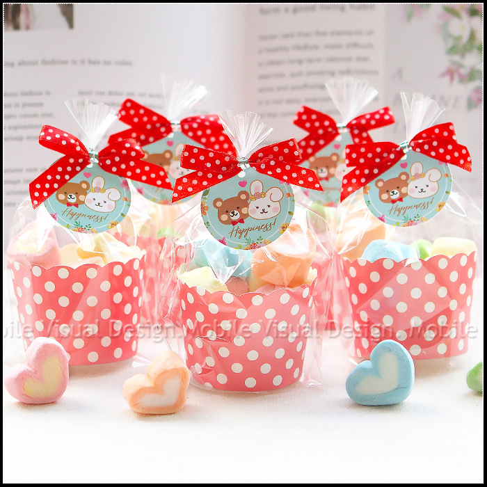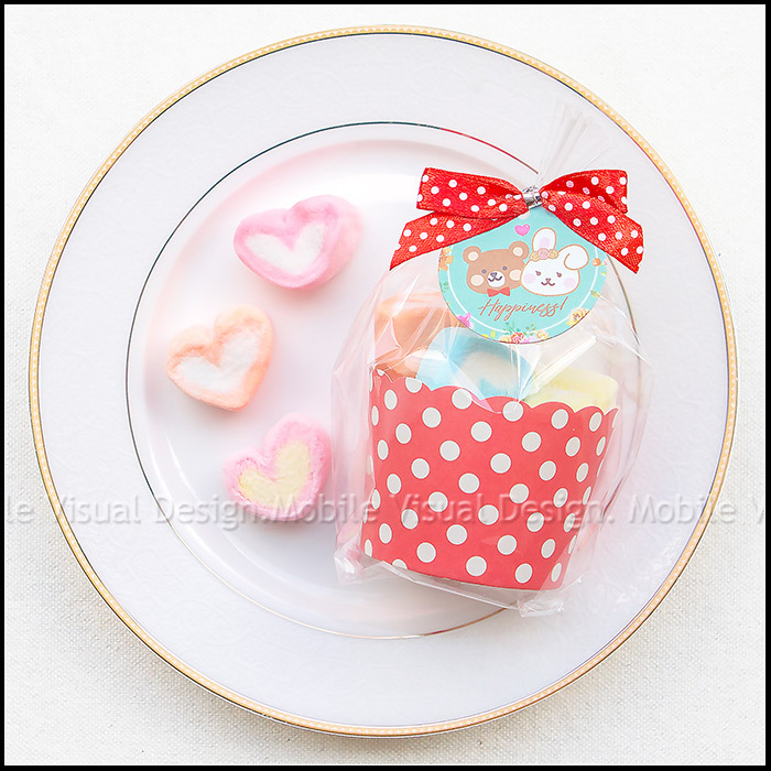 每份棉花糖杯均內含8顆愛心造型棉花糖, 並為您繫上幸福朵朵獨家設計吊牌及精美蝴蝶結, 相當可愛又溫馨喔!