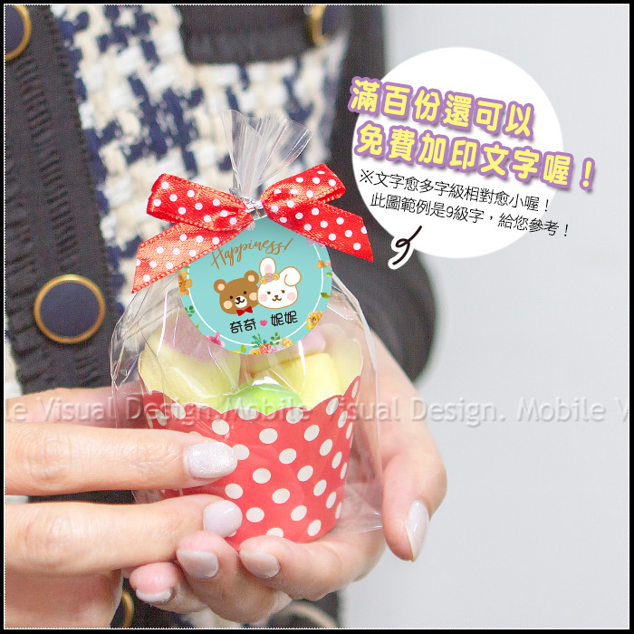 凡單筆訂單購買滿100份以上還可以免費幫您印上文字(日期)唷🧡 讓客人印象深刻!真是特別的客製小禮物👍 你們的用心一定要讓大家感受到! 在小地方多一點點的用心🧡 就可以讓親友們感受到多一點點的心意呢!