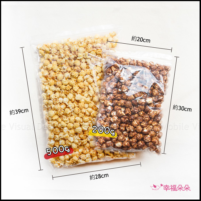 ♥口味:焦糖,巧克力(一包為單一口味) ♥保存期限:6個月 ♥爆米花容易受潮,開封後就儘早食用完畢,未吃完也要夾鏈袋封好喔! ♥共有200g和500g分裝包兩種可挑唷!