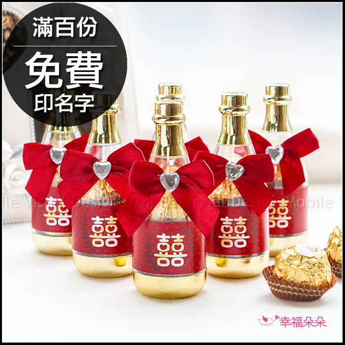 囍字香檳糖果瓶(金莎2顆入)-滿百份免費印名字 (新品上市特價中) |