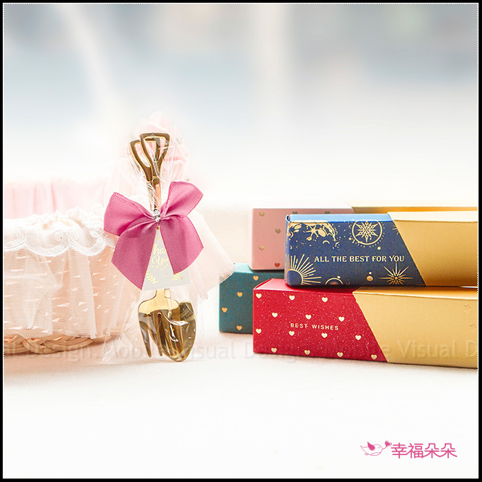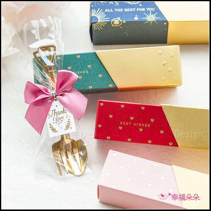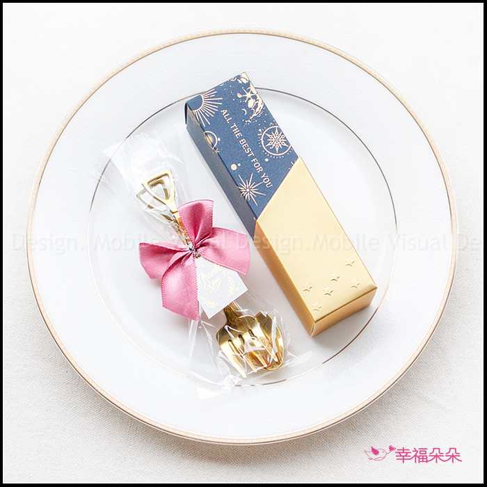 時尚閃金包裝盒約 寬13.5 x 高3.5 x 側寬3.5cm 鏟子叉子湯匙約 高12 x 寬2.3cm(含袋約 高14.5 x 寬6cm)