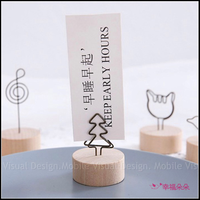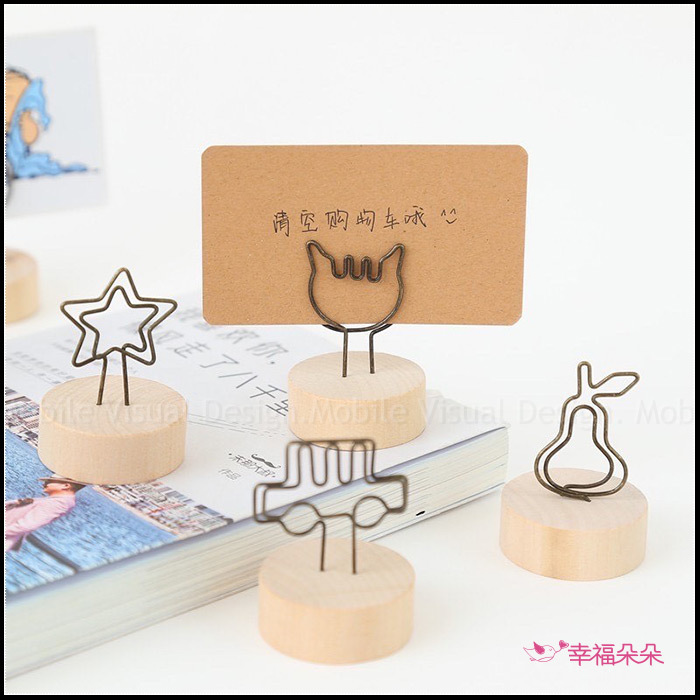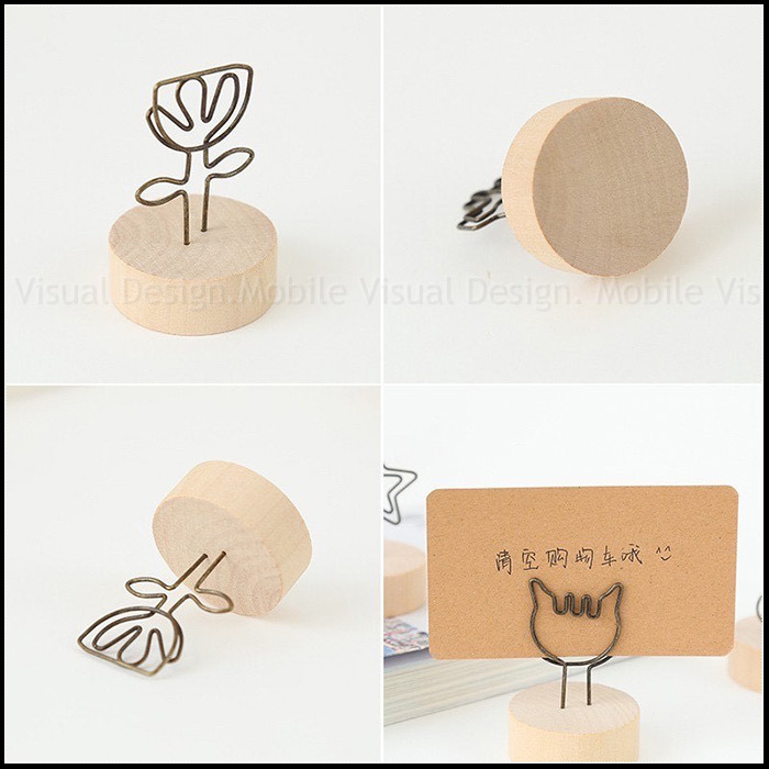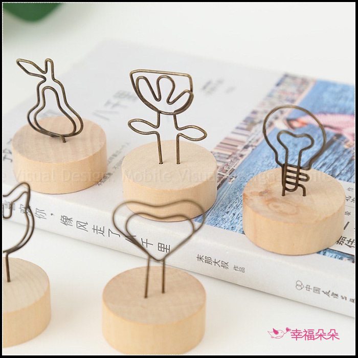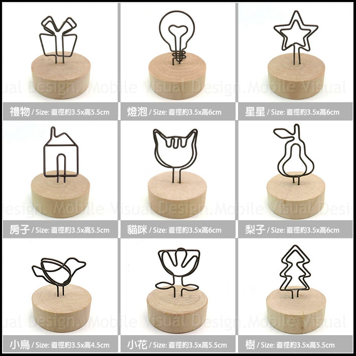 採用原木作為底座,天然原木塊拼接壓造, 並搭配仿舊感的造型夾,讓留言夾整體好可愛~