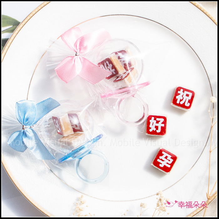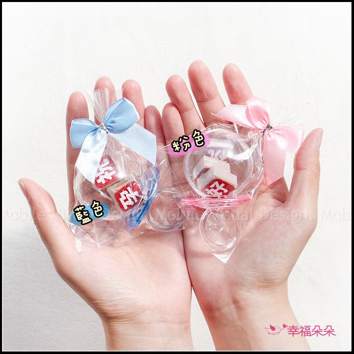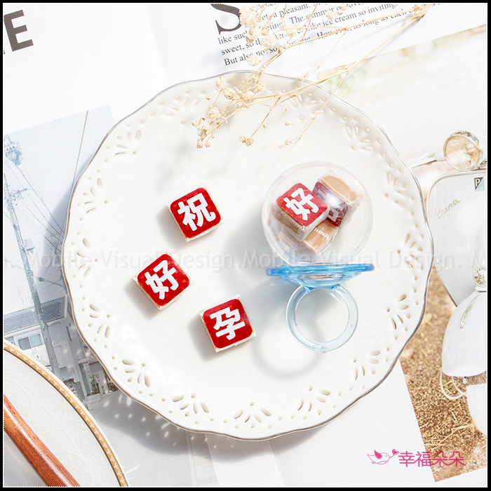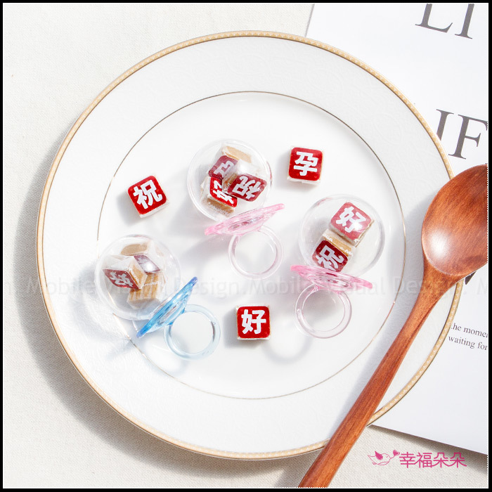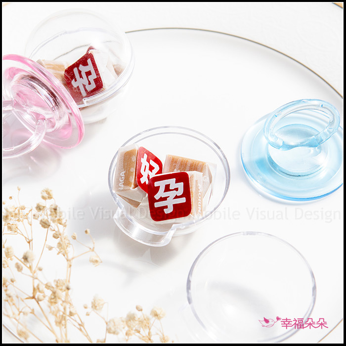 每個戒指奶嘴瓶內有3顆森永牛奶糖,均貼有超可愛的紅色祝好孕文字貼紙喔!讓糖果們增加有趣可愛的風格吧~!