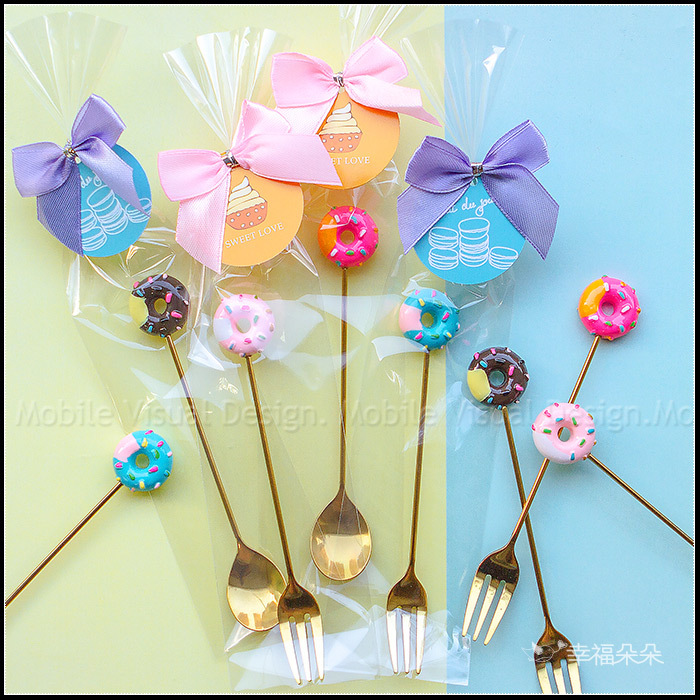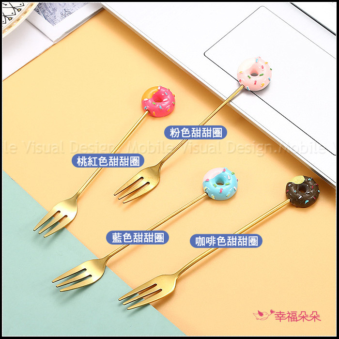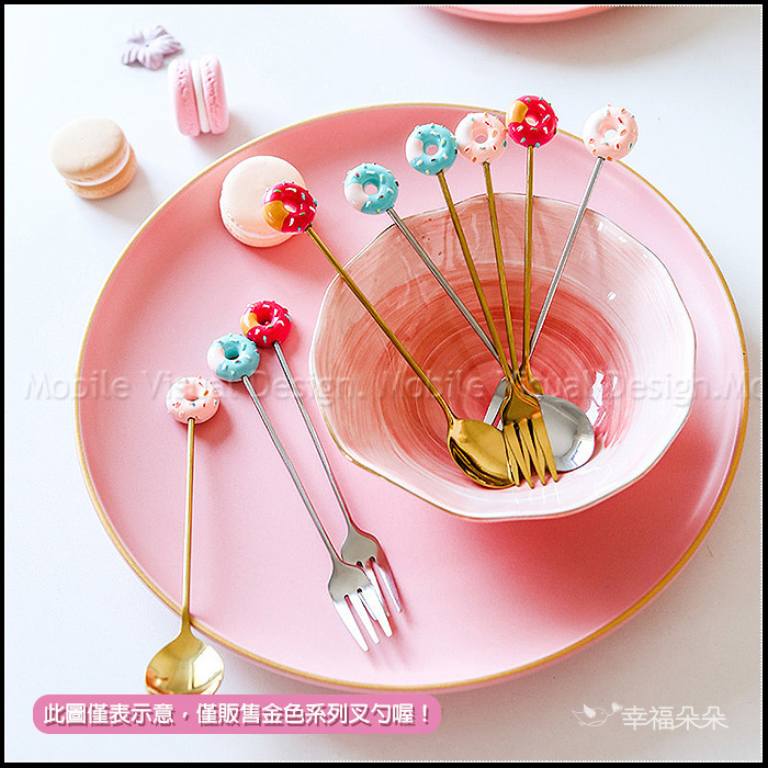 (附贈蝴蝶結吊牌包裝) 創意禮物-甜甜圈叉子湯匙 (滿百份免費印名字) 金色不鏽鋼水果叉 冰淇淋湯匙 (新品上市特價中)