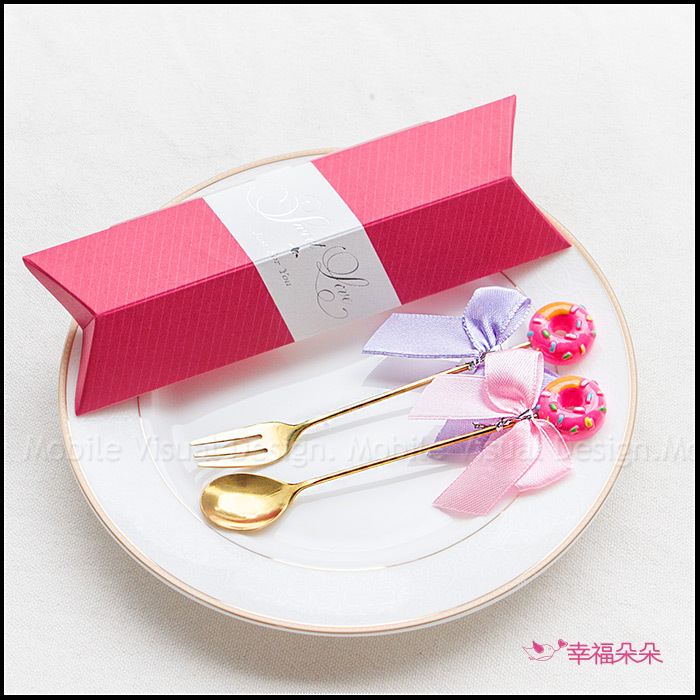 每份均有精美禮盒包裝(內含同款湯匙及叉子各1支), 安全耐用並有可愛的蝴蝶結裝飾喔!