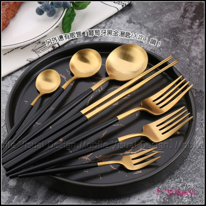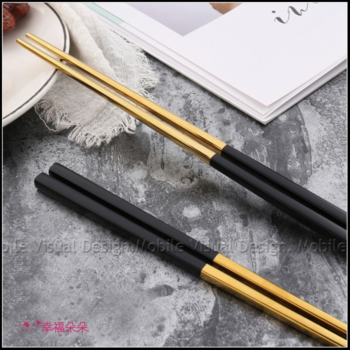 304不鏽鋼餐具 葡萄牙筷子 黑金方形防滑筷 21cm (新品上市特價中) |