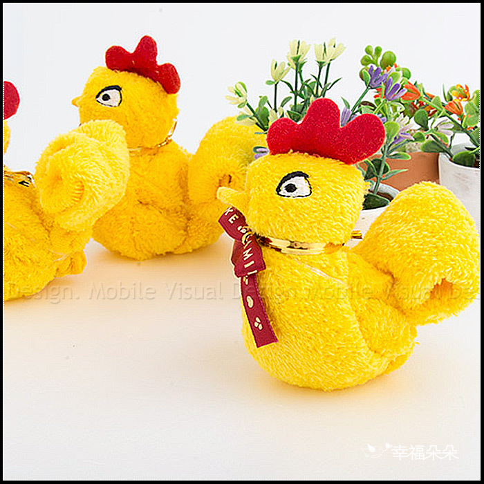 但習俗演變至今,已經不用準備活雞當帶路雞了,現今大多新人都是準備仿真雞造型或者Q版造型的雞玩偶來代替活雞,本商品一組即有2隻帶路雞造型的毛巾,可將毛巾雞放入您準備的小籃子中使用,嫁到夫家時,可將雞擺放在新房做裝飾,超級可愛!