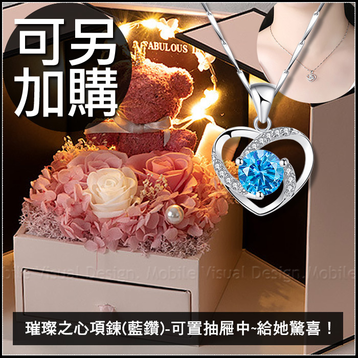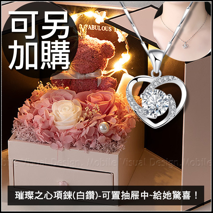 現貨 花環燈小熊永生花禮盒 雙開抽屜禮盒 (附贈提袋) (新品上市特價中)