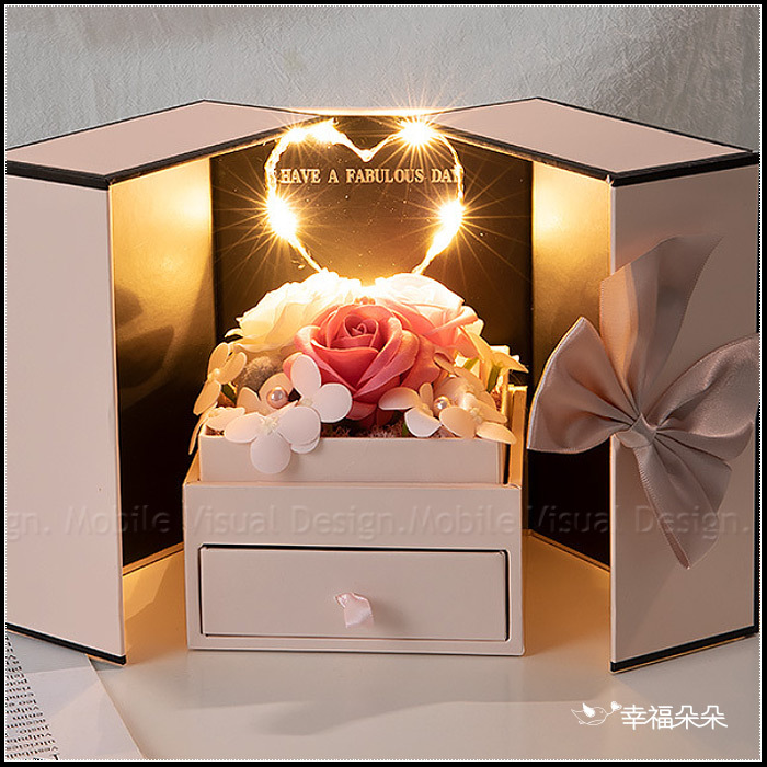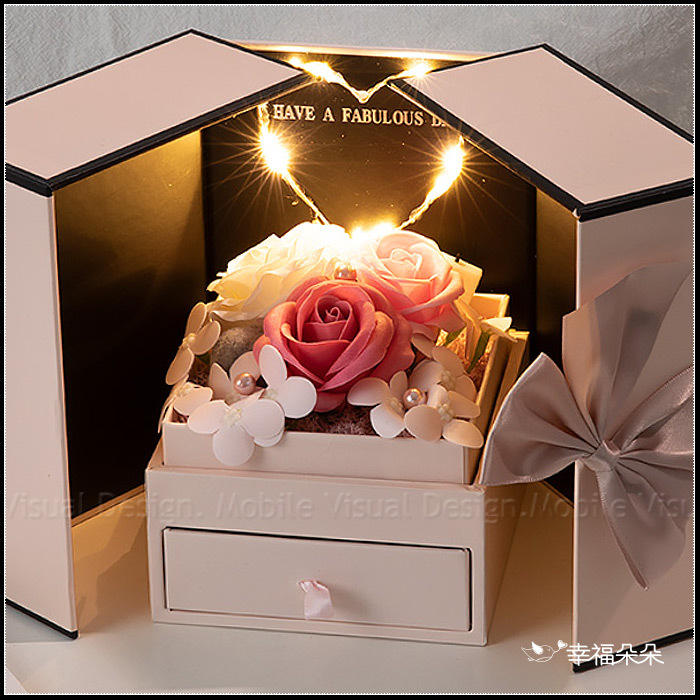 現貨 愛心燈香皂玫瑰花禮盒 雙開抽屜禮盒 (附贈提袋) (新品上市特價中)