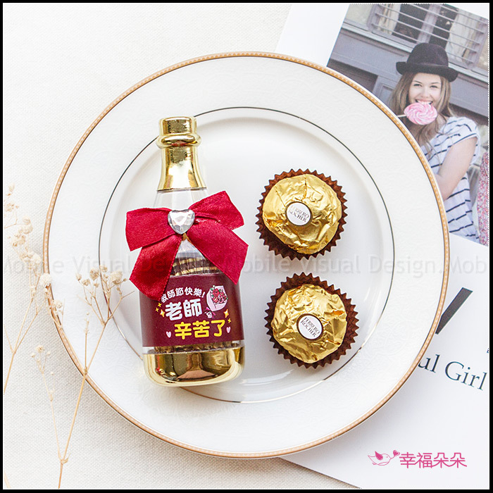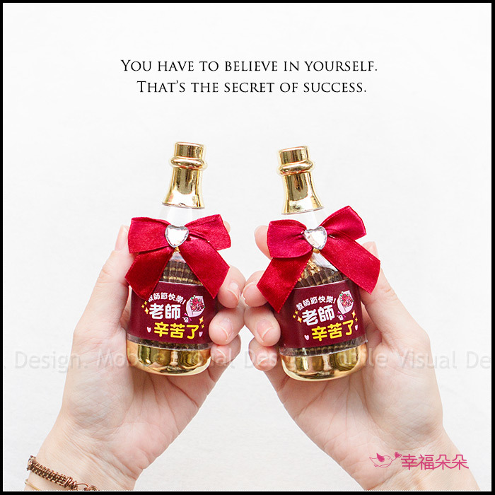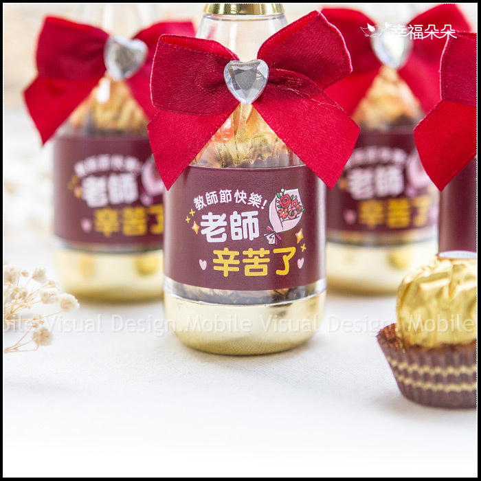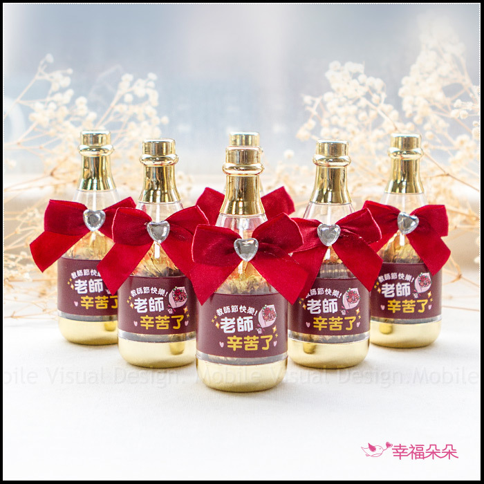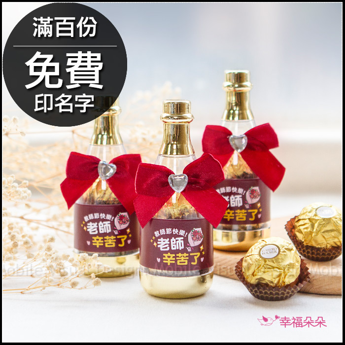 教師節快樂 香檳糖果瓶(金莎2顆入)-滿百份免費印名字 (新品上市特價中) |
