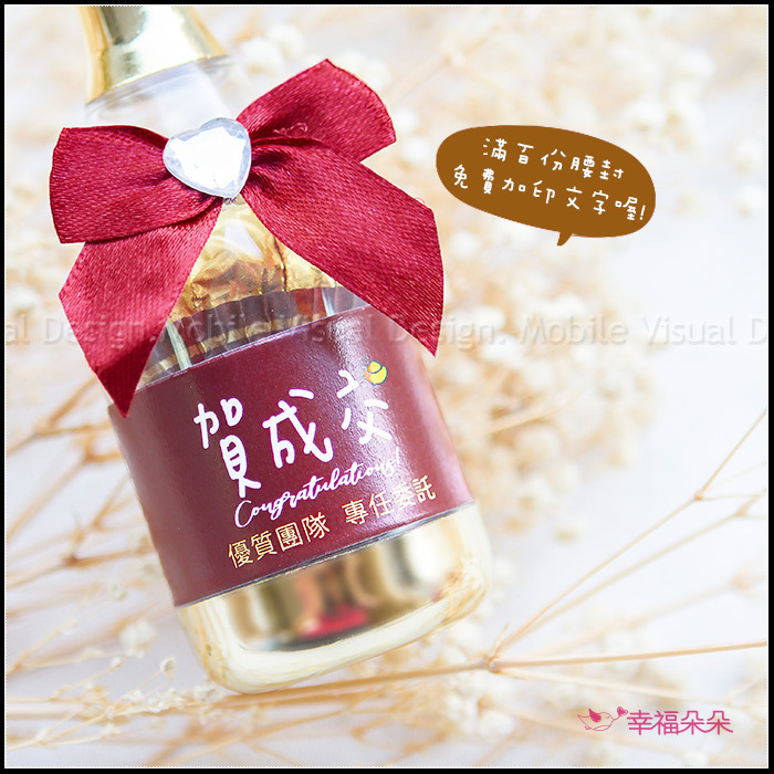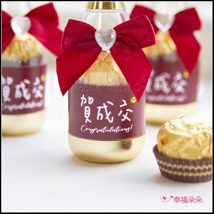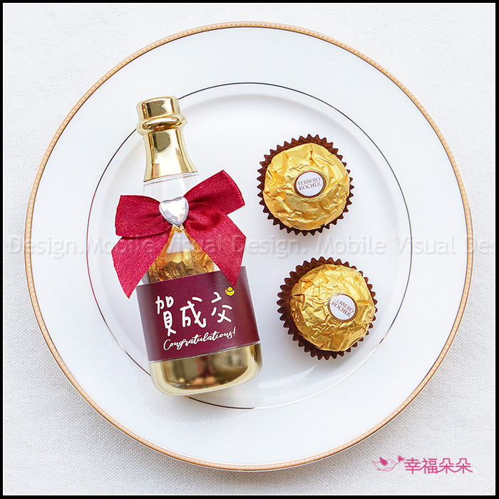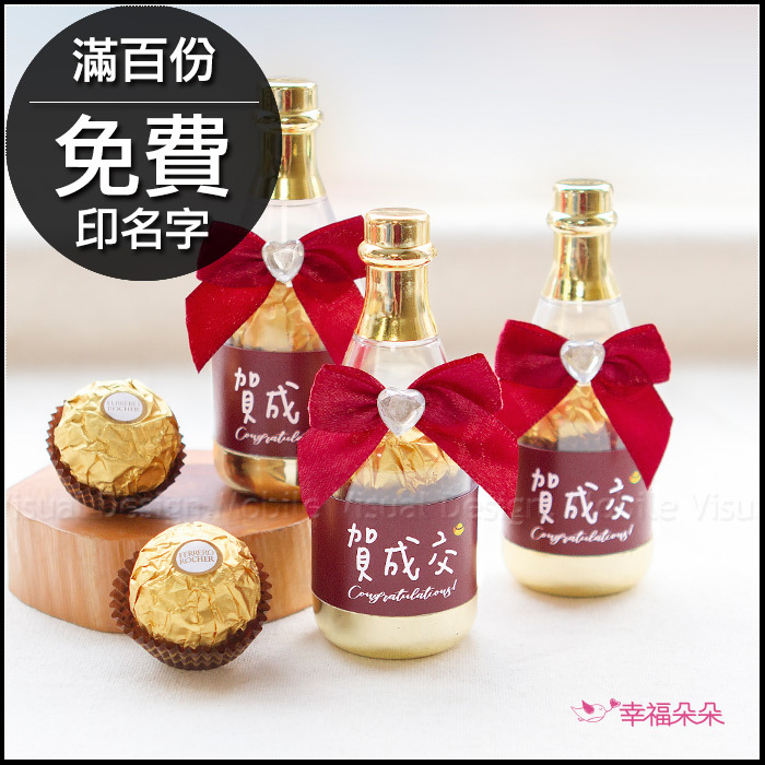 業務禮物贈品 賀成交 香檳糖果瓶(金莎2顆入)-滿百份免費印名字 (新品上市特價中)
