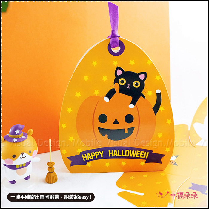 *此款萬聖節設計DIY糖果包裝盒(禮物盒) 相當精緻可愛! 南瓜貓貓跟幽靈兩面一次擁有!組裝超easy! 拿來包裝小禮品或裝入糖果、金莎、餅乾等都hen棒唷😊 *容量約略可裝入6顆金莎或2瓶Tiptree28g小果醬唷!! *此商品包含: 平鋪紙盒(不需粘貼,只需摺成型)1份、紫色緞帶1條
