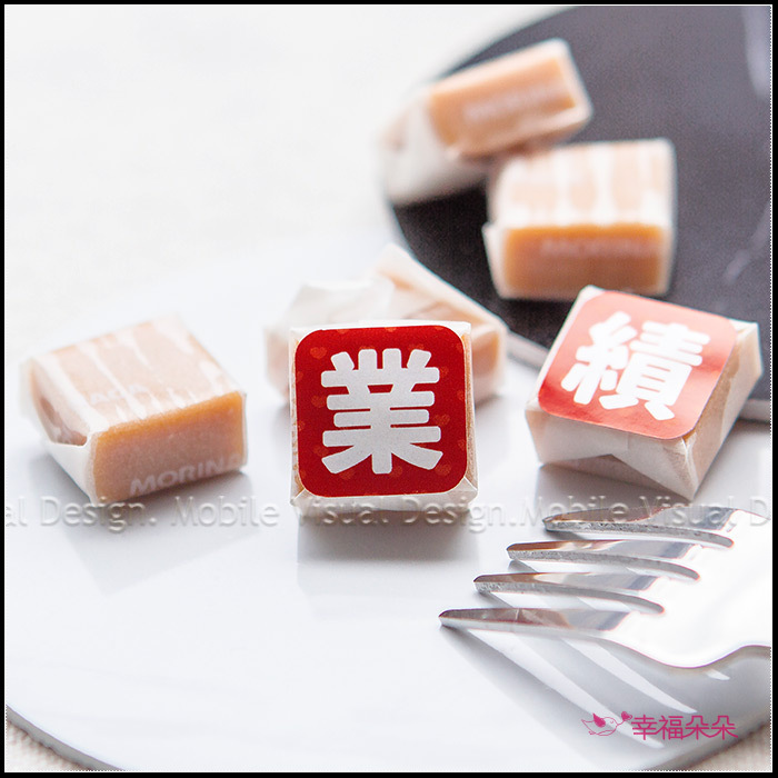每份內有5顆森永牛奶糖,均貼有超可愛的文字貼紙喔!讓糖果們增加有趣的風格吧~送業務絕對是超特別的小禮物唷! 貼紙款式共有以下兩款可挑 ↓↓↓ 祝業績長紅、業績大爆發🧡