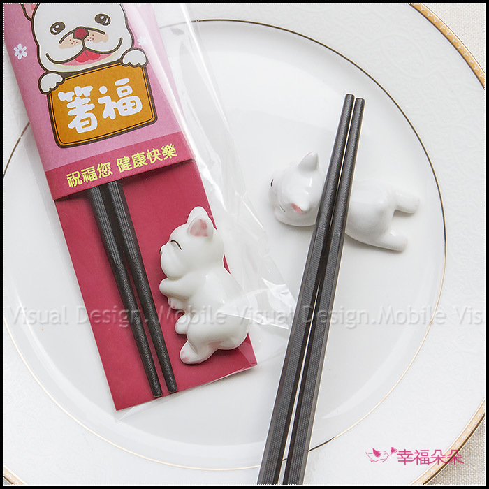 每組禮物包均有 筷子1雙 + 法鬥造型筷架1個 ! 購買100組以上還可以免費印上文字唷!