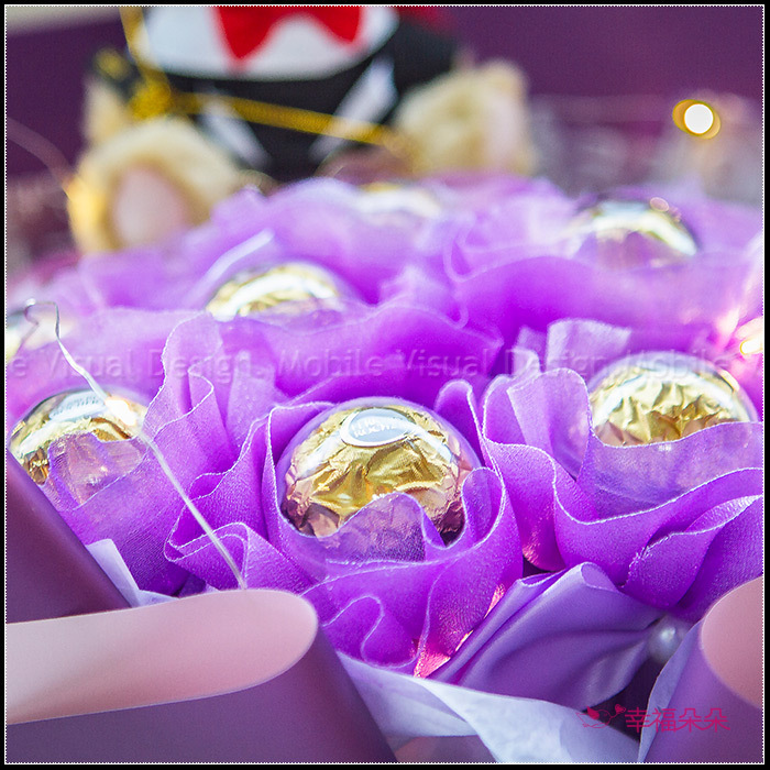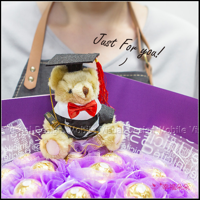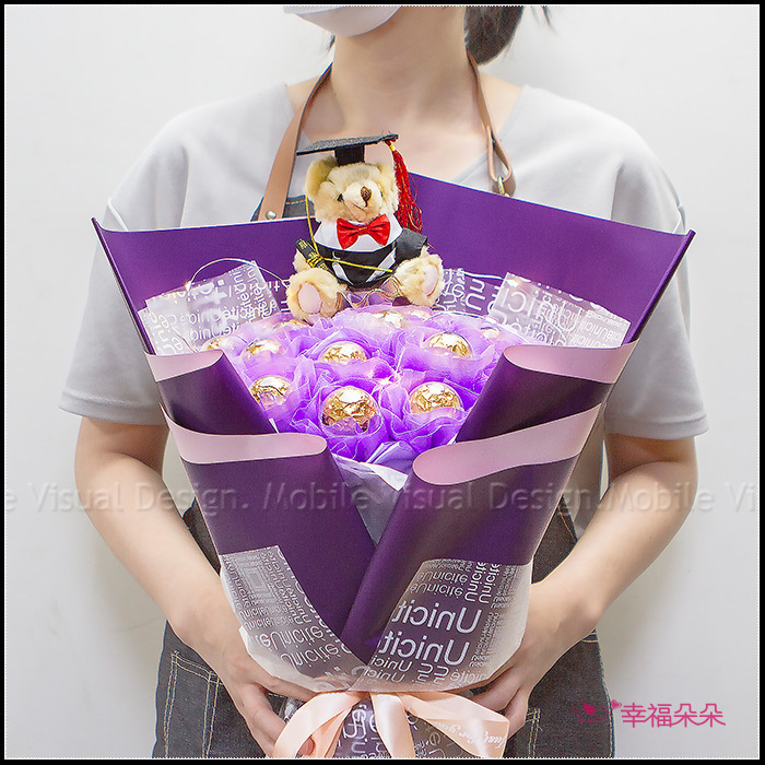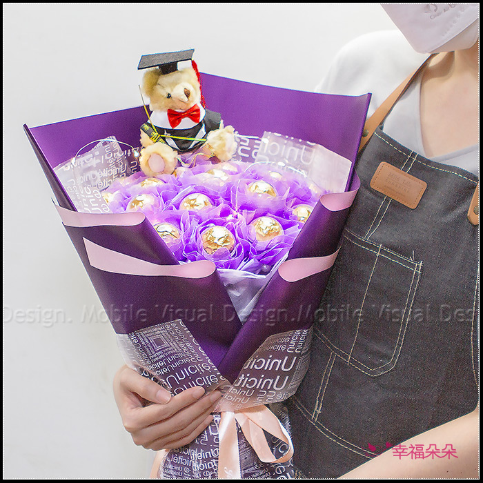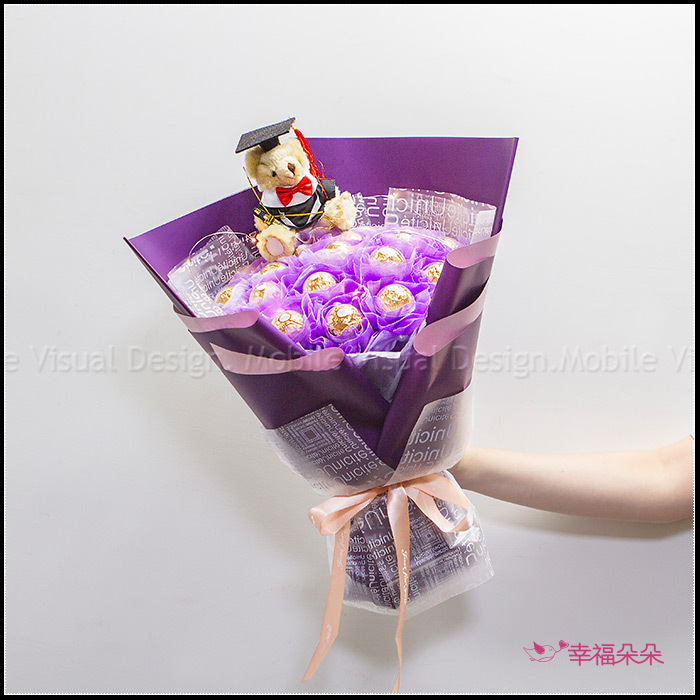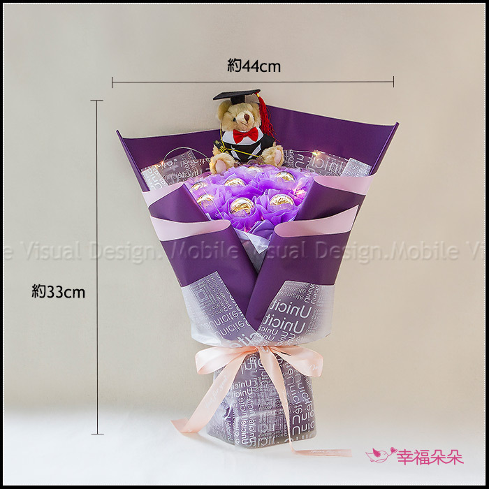 畢業花束 畢業熊+豪華版金莎18顆花束(附燈串.夢幻紫)A012 (新品上市特價中)