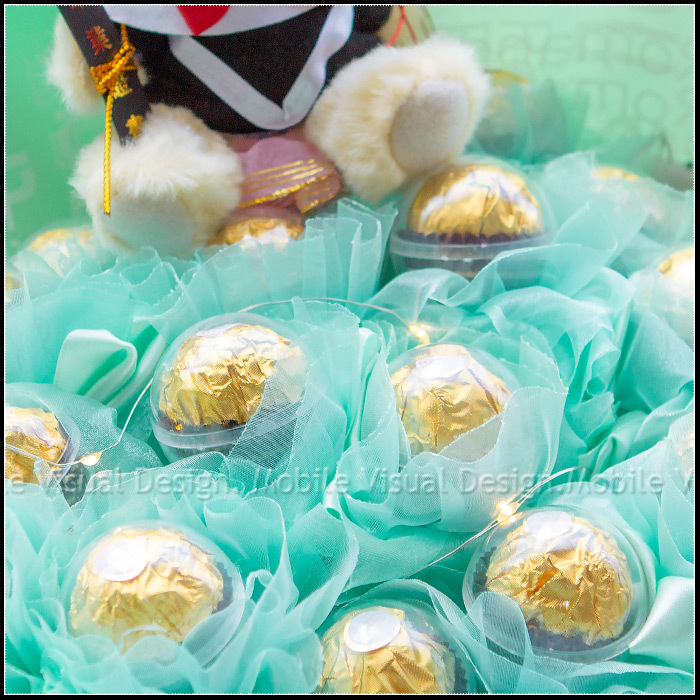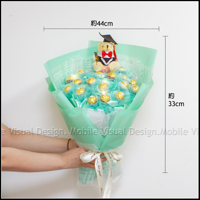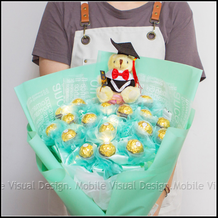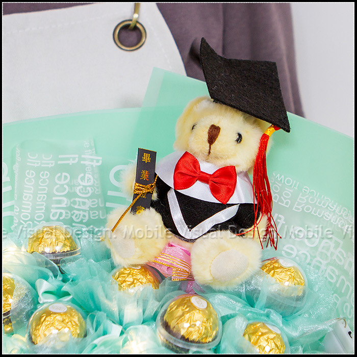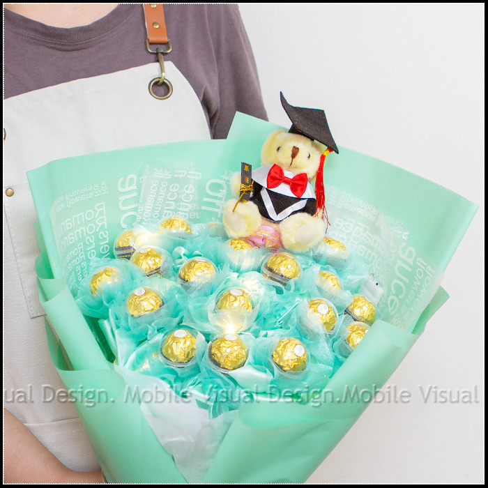畢業花束 畢業熊+豪華版金莎18顆花束(附燈串.Tiffany綠)A012 (新品上市特價中)