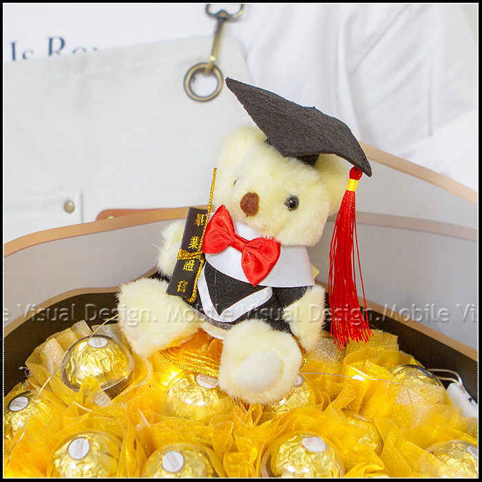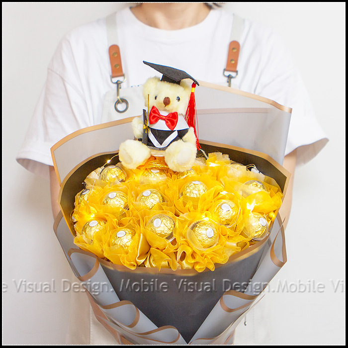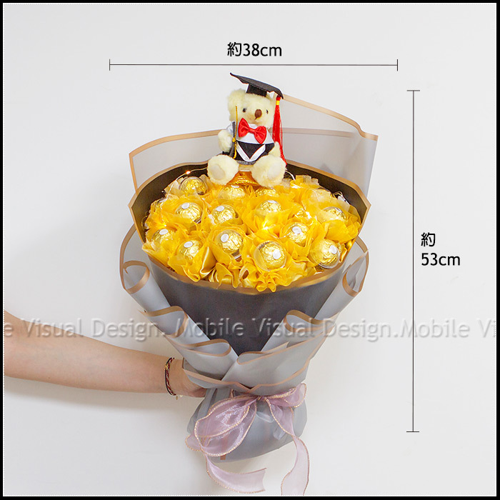 畢業花束 畢業熊+豪華版金莎18顆花束(附燈串.低調金)A012 (新品上市特價中)