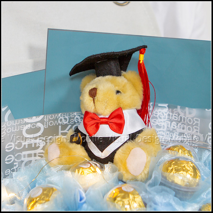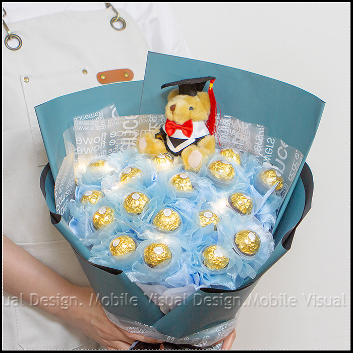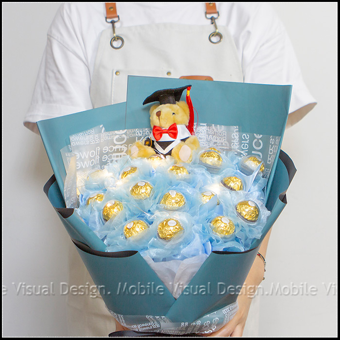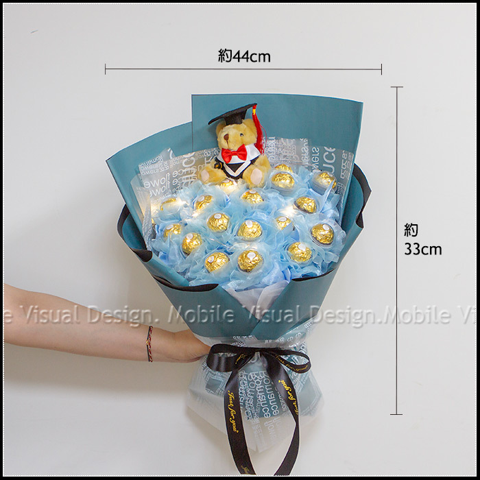 畢業花束 畢業熊+豪華版金莎18顆花束(附燈串.療癒藍)A012 (新品上市特價中)