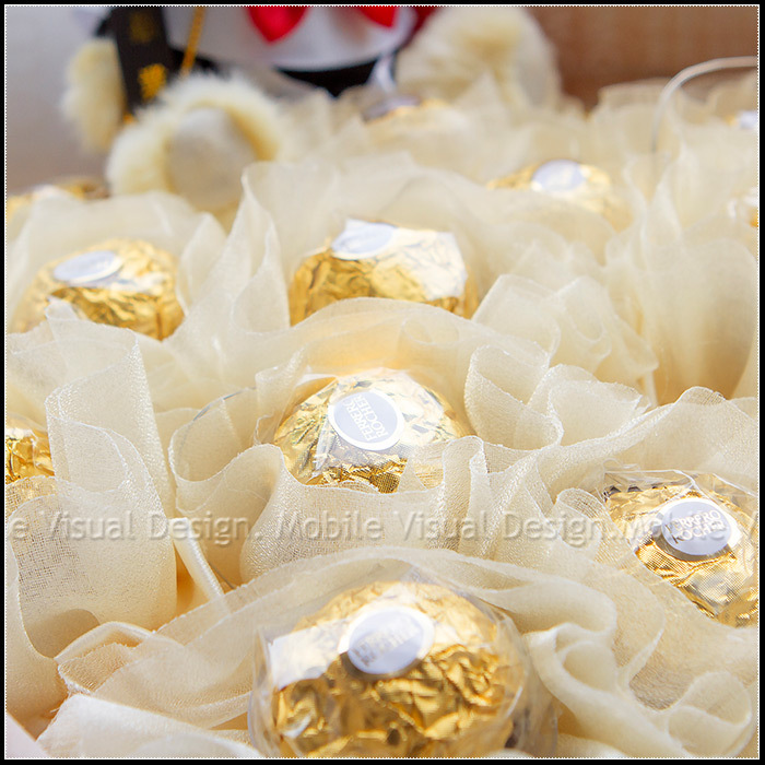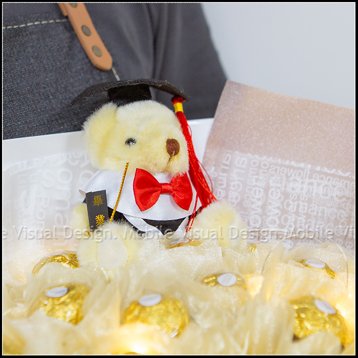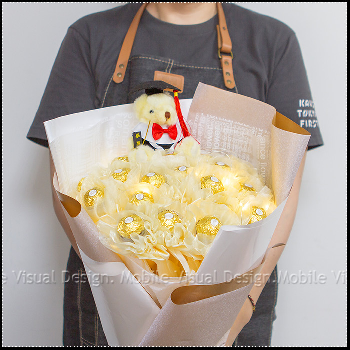畢業花束 畢業熊+豪華版金莎18顆花束(附燈串.純色米白)A012 (新品上市特價中)