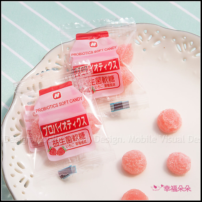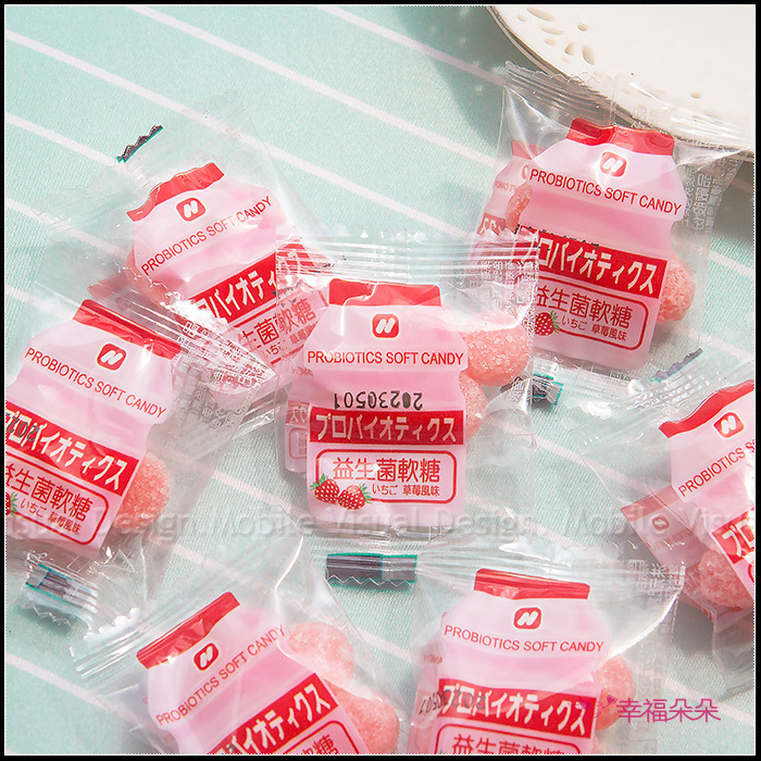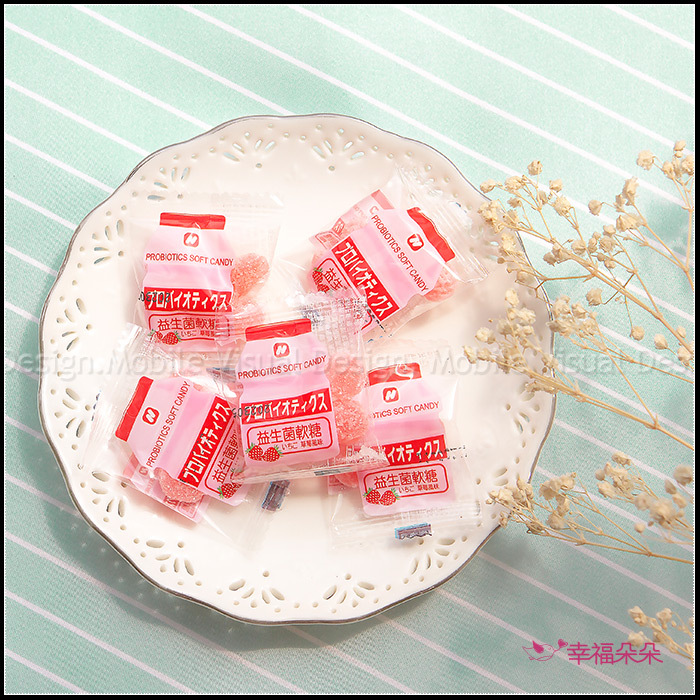 草莓風味益生菌軟糖,口感吃起來QQ的~甜甜好滋味。(每1小包約3至6顆糖是正常的,但有時候會出現1包2顆或者是1包7顆,機器封裝難免有誤請留意!)