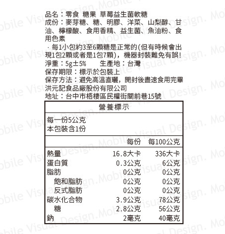 麥芽糖、糖、明膠、洋菜、山梨醇、甘油、檸檬酸、食用香精、益生菌、魚油粉、食用色素