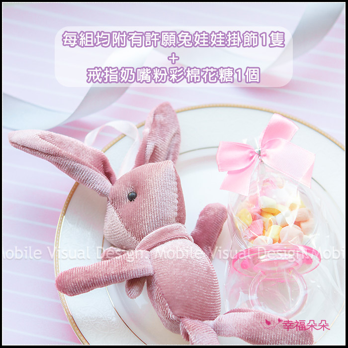 生日分享禮 許願兔娃娃掛飾+戒指奶嘴粉彩棉花糖 (新品上市特價中)