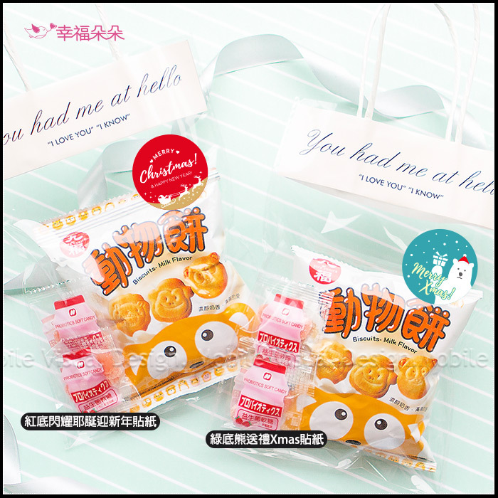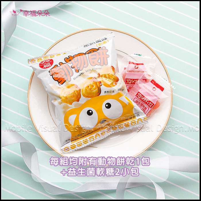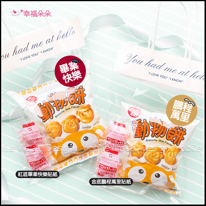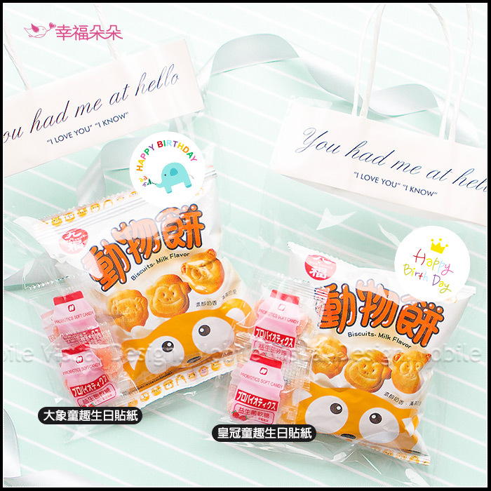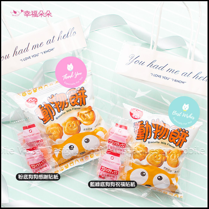 🧡每組小禮袋均有1包動物餅乾 + 2小包益生菌軟糖 每組小禮袋右上方皆會貼有幸福朵朵獨家設計4cm圓貼紙,非常俏皮可愛喔! 拿來作為生日分享、情人節禮物、畢業季等,活動送朋友都hen棒喲👍