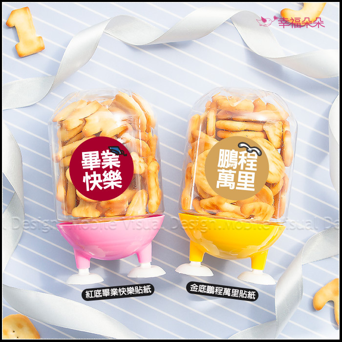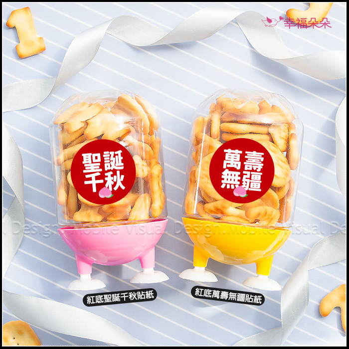 🧡腳ㄚ罐外的貼紙款式,可依送禮用途挑選: 生日用:「皇冠童趣Happy Birthday」貼紙 生日用:「大象童趣HAPPY BIRTHDAY」貼紙 婚禮用:「紅底囍字」貼紙 婚禮用:「藍綠色底囍字」貼紙 感謝萬用:「粉底狗狗Thank You」貼紙 感謝萬用:「藍底狗狗Best Wishes」貼紙 情人節用:「愛心人Happy Valentine's Day」貼紙 母親節用:「粉底母親節快樂」貼紙 母親節用:「紅底媽媽您辛苦了」貼紙 父親節用:「藍底父親節快樂」貼紙 考試祝福用:「金底金榜題名」貼紙 考試祝福用:「紅底追分成功」貼紙 畢業祝福用:「紅底畢業快樂」貼紙 畢業祝福用:「金底鵬程萬里」貼紙 萬聖節用:「萬聖節快樂均款」貼紙(不挑款) 聖誕節用:「綠底熊送禮Xmas」貼紙 聖誕節用:「紅底閃耀耶誕迎新年」貼紙 神明祝壽用:「紅底聖誕千秋」貼紙 神明祝壽用:「紅底萬壽無疆」貼紙