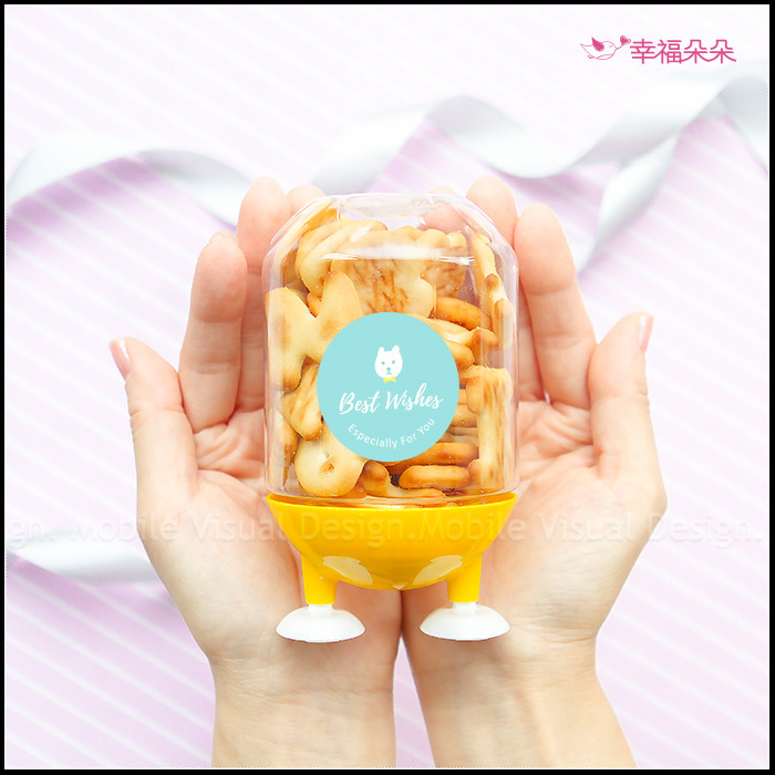 可愛腳丫罐裝設計,放在辦公桌上有它陪伴,還可以偶爾對它壞壞❤ (我是說打開腳ㄚ蓋吃餅乾~~) 是不是讓生活增加了一點趣味呢~~ 餅乾吃完還可以拿來續杯 (再來一客餅乾) 或是裝其他喜歡的小物~~ 每罐腳丫罐都可依您需要的用途貼上指定4cm圓款式貼紙唷!超讚la👍