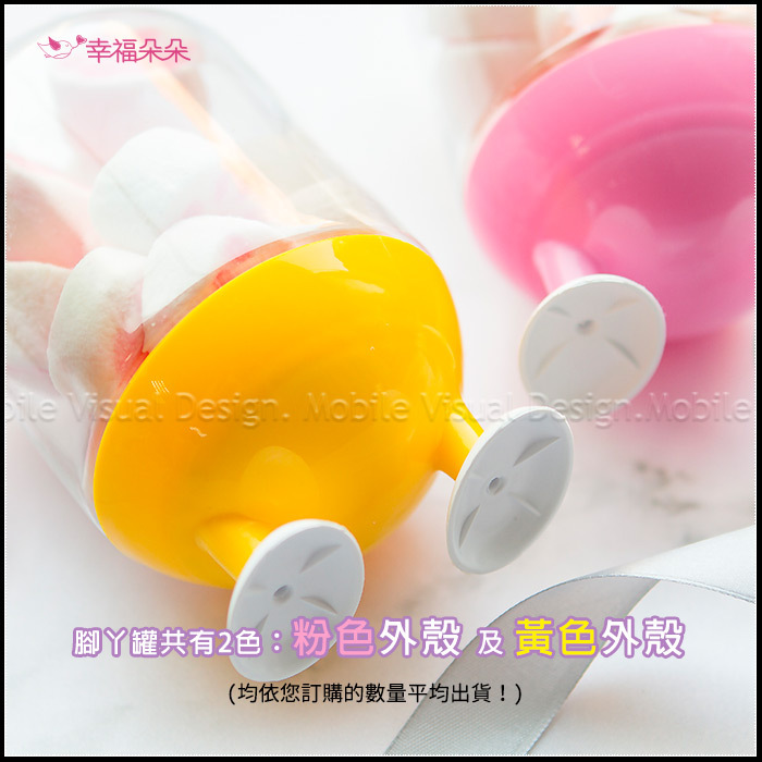 腳丫罐共有2色:粉色外殼及黃色外殼 ※腳ㄚ罐外殼顏色均依您訂購的數量平均出貨!若您只訂1罐者均以粉色外殼出貨!