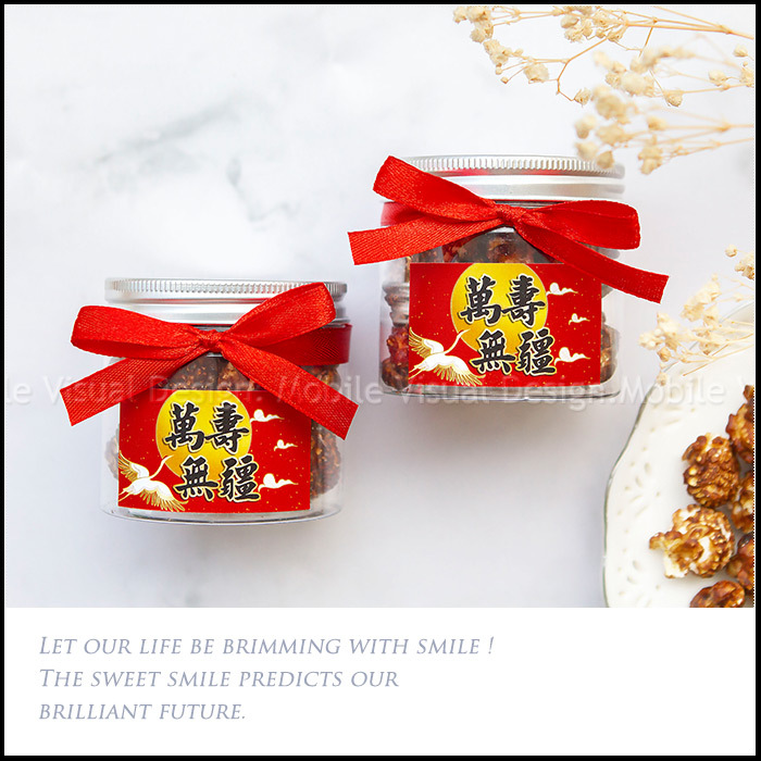 腰封共有2款可挑:聖誕千秋、萬壽無疆。 腰封均以丹頂鶴飛月為主題設計,亦寓意著福祿安康、圓滿吉祥、健康長壽,在古代民間更是羽族動物之首,也可象徵指日高升! 是相當有含意的小禮物喔! 🧡100份以下是公版貼紙(無客製文字) 🧡100份以上貼紙可以免費印製文字