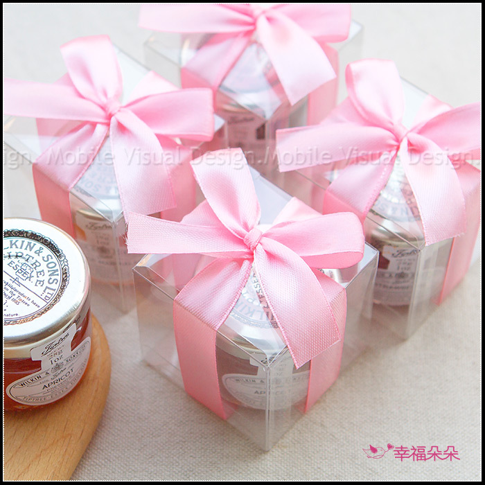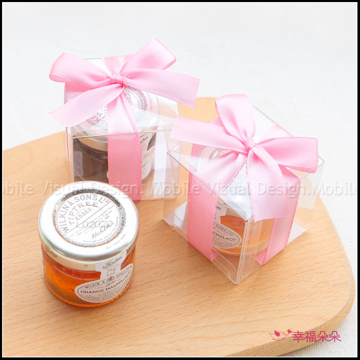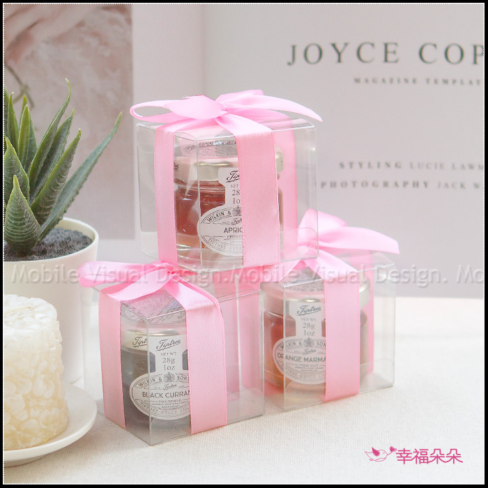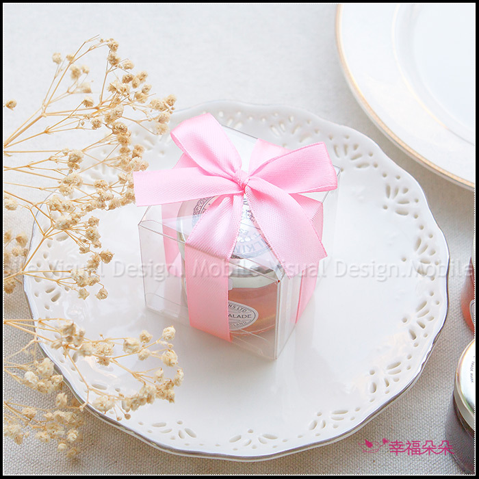 *此款小果醬以透明盒並繫上2cm寬粉色緞帶做裝飾點綴,相當喜氣喔!也象徵著甜甜蜜蜜、圓滿幸福。此商品已幫您手工製作好了喔!不用再自己DIY了!