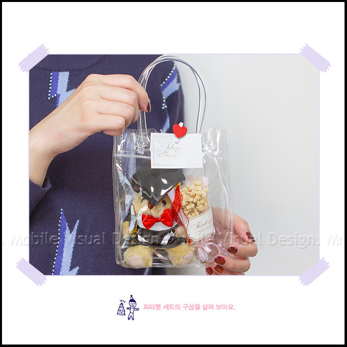 每組小禮袋均有:1束迷你滿天星花束 + 1隻小熊 + 1張大理石底紋畢業小卡