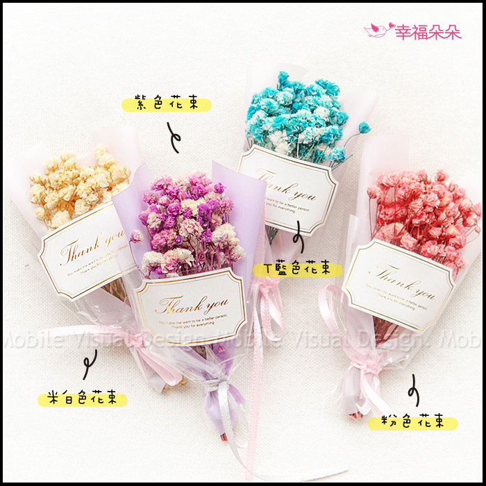 花束共有4色可挑:粉色花束、米白色花束、紫色花束、T藍色花束