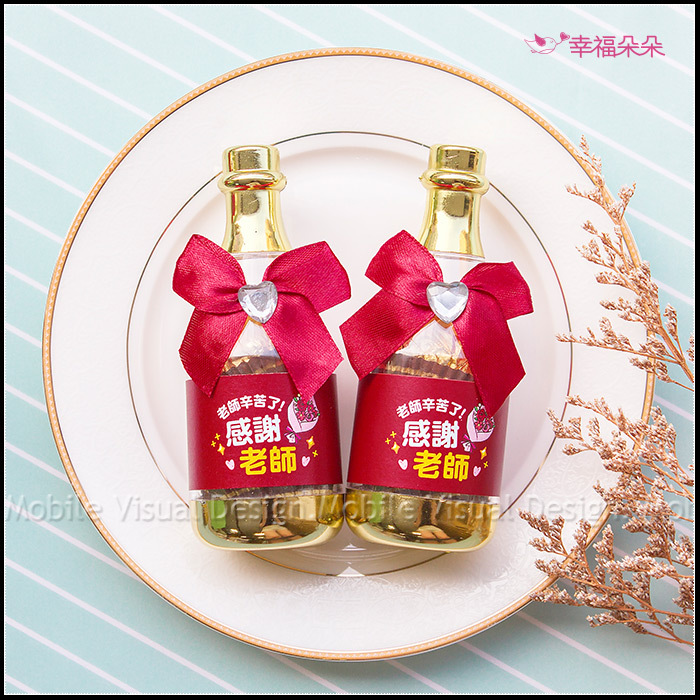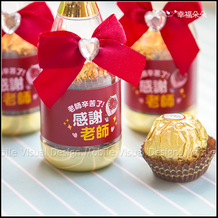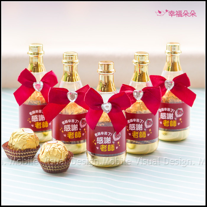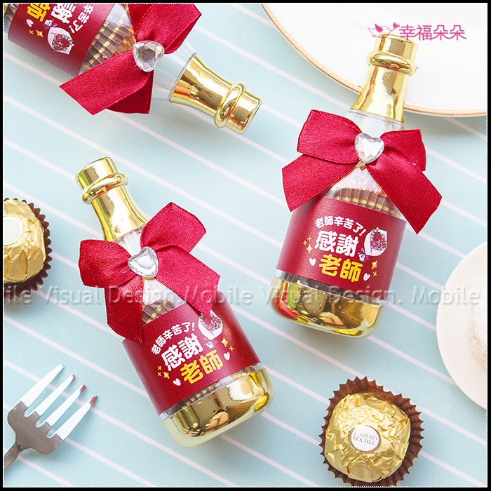 感謝老師 香檳糖果瓶(金莎2顆入) -滿百份免費印名字 (新品上市特價中)