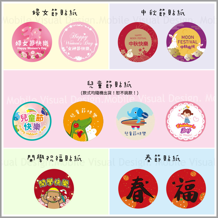 🧡貼紙可依送禮用途挑選: 生日用:皇冠童趣生日貼紙 生日用:大象童趣生日貼紙 婚禮用:紅底囍字貼紙 婚禮用:藍綠色底囍字貼紙 感謝萬用:粉底狗狗感謝貼紙 感謝萬用:藍底狗狗祝福貼紙 福音祈福用:恩典滿溢貼紙 教師節用:老師辛苦了貼紙 情人節用:愛心人情人節貼紙 母親節用:粉底母親節快樂貼紙 母親節用:紅底媽媽您辛苦了貼紙 父親節用:藍底父親節快樂貼紙 考試祝福用:金底金榜題名貼紙 考試祝福用:紅底追分成功貼紙 畢業祝福用:紅底畢業快樂貼紙 畢業祝福用:金底鵬程萬里貼紙 萬聖節用:萬聖節快樂均款貼紙(不挑款) 聖誕節用:綠底熊送禮Xmas貼紙 聖誕節用:紅底閃耀耶誕迎新年貼紙 神明祝壽用:紅底聖誕千秋貼紙 神明祝壽用:紅底萬壽無疆貼紙 婦女節用:淺粉底婦女節快樂貼紙 婦女節用:洋紅底婦女節快樂貼紙 中秋節用:紅底中秋快樂貼紙 中秋節用:紫底中秋愉快貼紙 兒童節用:兒童節快樂貼紙(不挑款) 開學用:紅底開學快樂貼紙 春節用:紅底春字貼紙 春節用:紅底福字貼紙 (以上每小圓皆為3cm大)