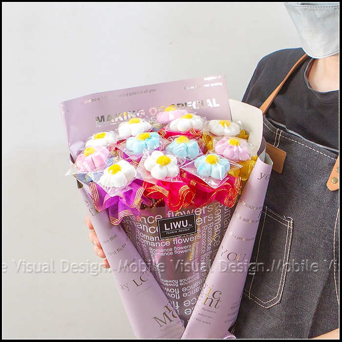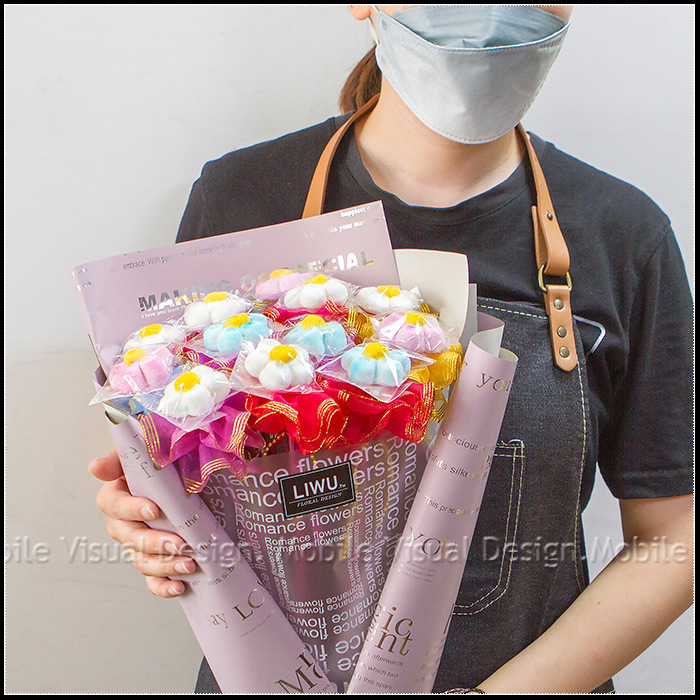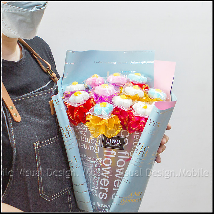 此花束是由12支義大利大花花棉花糖花棒所組成,是一份可愛又甜美的禮物喔!(棉花糖顏色是隨機混合出貨! 恕不挑色!) 包裝紙顏色共有2色可挑:粉色、藍色
