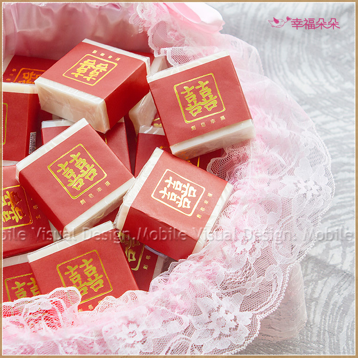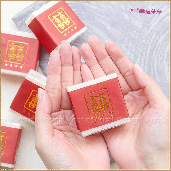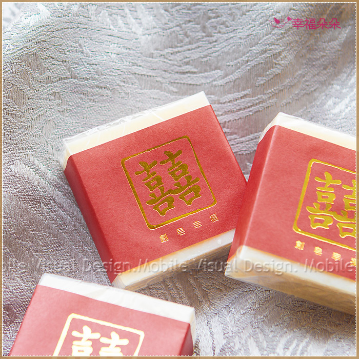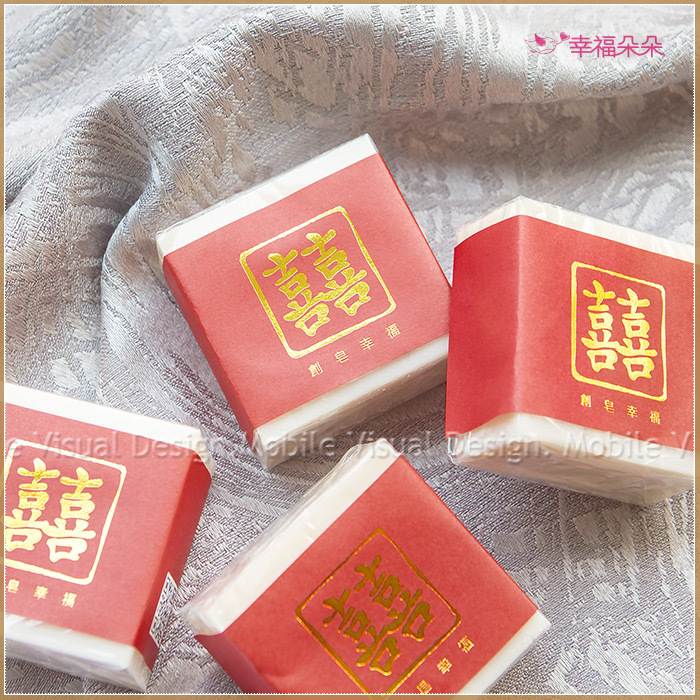 每塊香皂均貼有囍字燙金文字質感貼紙喔!相當有質感!