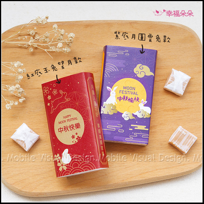 腰封共有2款可挑:紅底玉兔望月-中秋快樂、紫底月圓雲兔-中秋愉快🧡